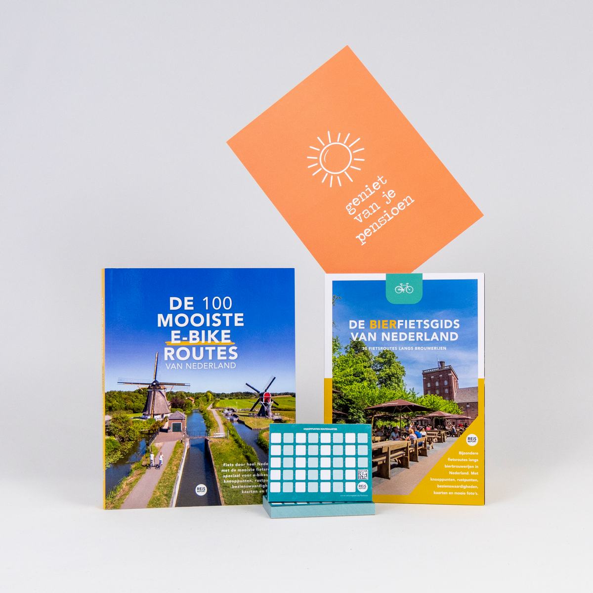 In dit pensioen cadeau pakket ontvang je bovendien maar liefst 100 knooppunten-routekaartjes waarmee je eenvoudig je route kunt volgen. Op de grote A5 pensioenkaart kun je met meerdere mensen nog een leuke boodschap toevoegen.
