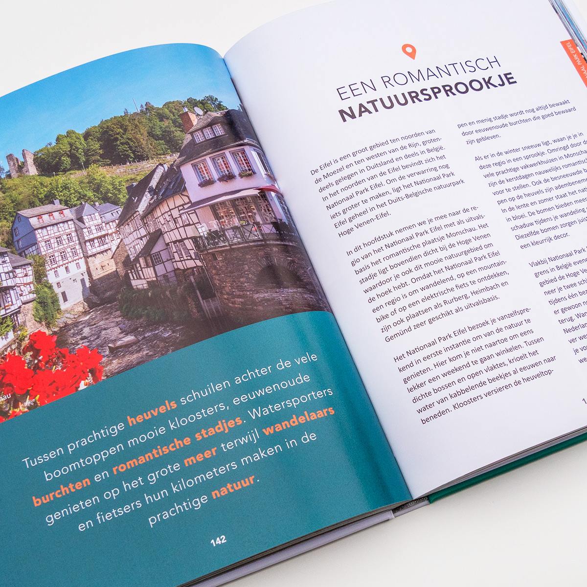 Bekroond met de Vlaamse Persprijs ontdek je met dit luxe hardcover boek de mooiste regio's in België & Duitsland, net over de grens met Nederland. Honderden bijzondere plekken, wandel- & fietsroutes, prachtige foto's, slaapplekken en achtergrond informatie. Een prachtig boek met 268 pagina's en gratis app.